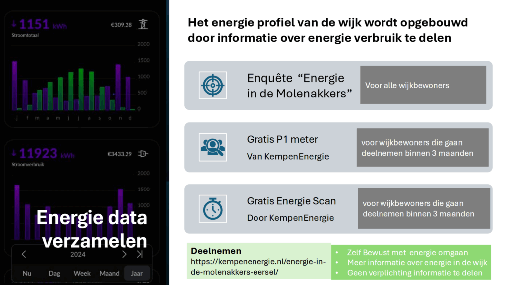Bewoners uit de Molenakkers onderzoeken samen met KempenEnergie of energie (gaan) delen in de wijk voordelen kan opleveren.