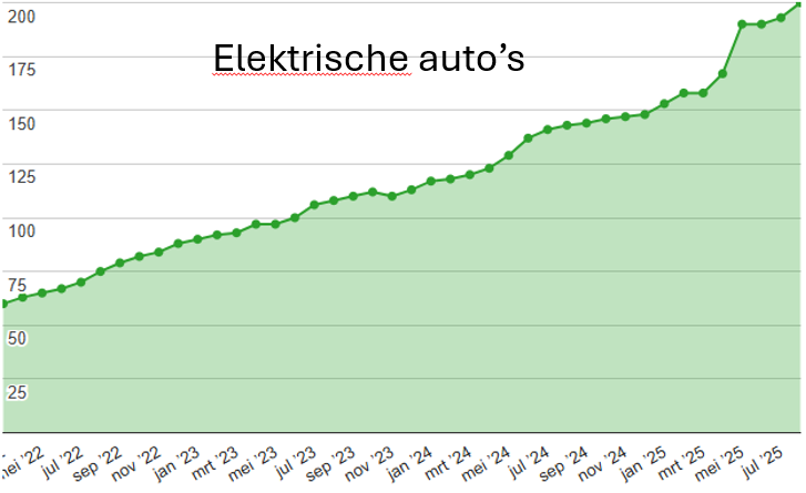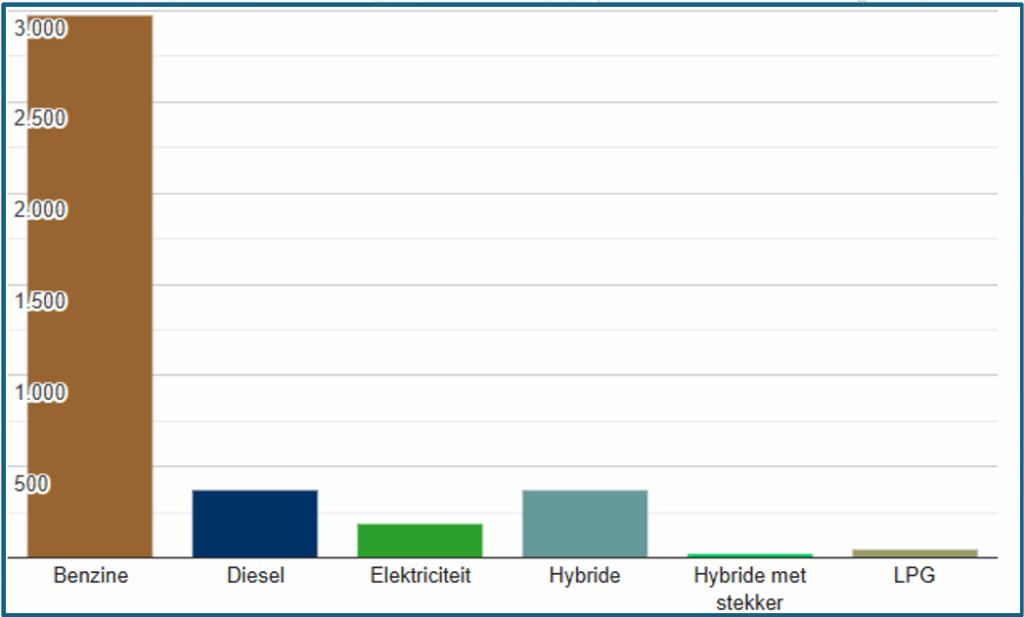 Personenauto’s naar energiebron. Bron: Kentekenregistratie RDW, situatie 1 mei 2025
